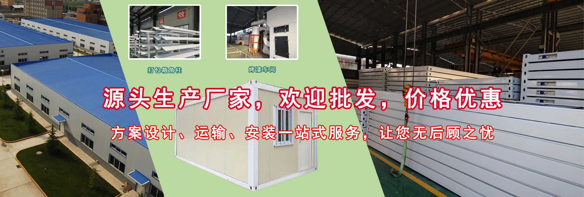 文創(chuàng)鋼結(jié)構(gòu)工程有限公司專業(yè)生產(chǎn),活動板房,集裝箱房,鋼結(jié)構(gòu),輕鋼別墅,移動廁所,活動圍墻,巖棉板,是一家集設(shè)計、生產(chǎn)、建造、營銷一體化的專業(yè)智能化集成房屋獨(dú)資企業(yè),服務(wù)市場包括珠三角廣州、深圳、東莞、佛山、中山、肇慶,咨詢合作執(zhí)線: 139 2872 2202